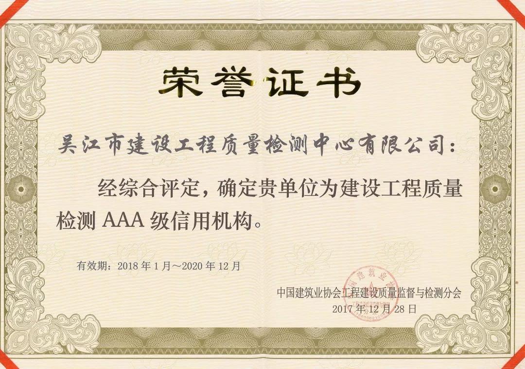 祝賀我公司被中國建筑業(yè)協(xié)會工程建設(shè)質(zhì)量監(jiān)督與檢測分會評定為建設(shè)工程質(zhì)量檢測AAA級信用機(jī)構(gòu)! 企業(yè)業(yè)務(wù) 起重機(jī)械檢驗 市政工程檢測 交通工程檢測 建筑材料檢測 工程測量測繪